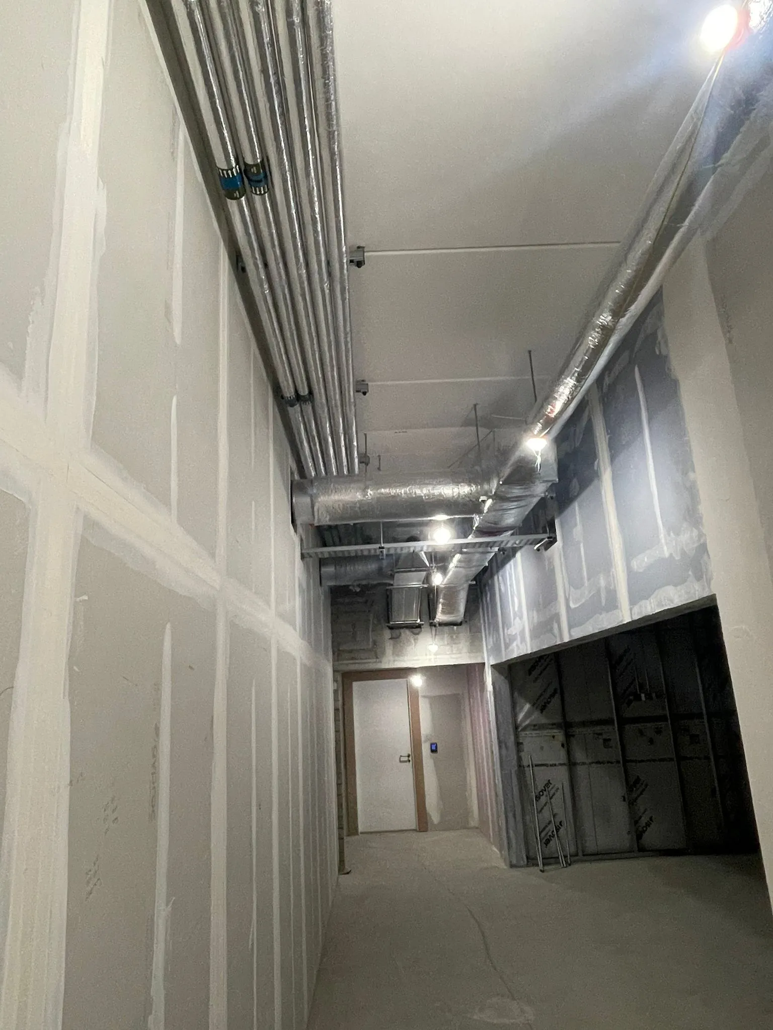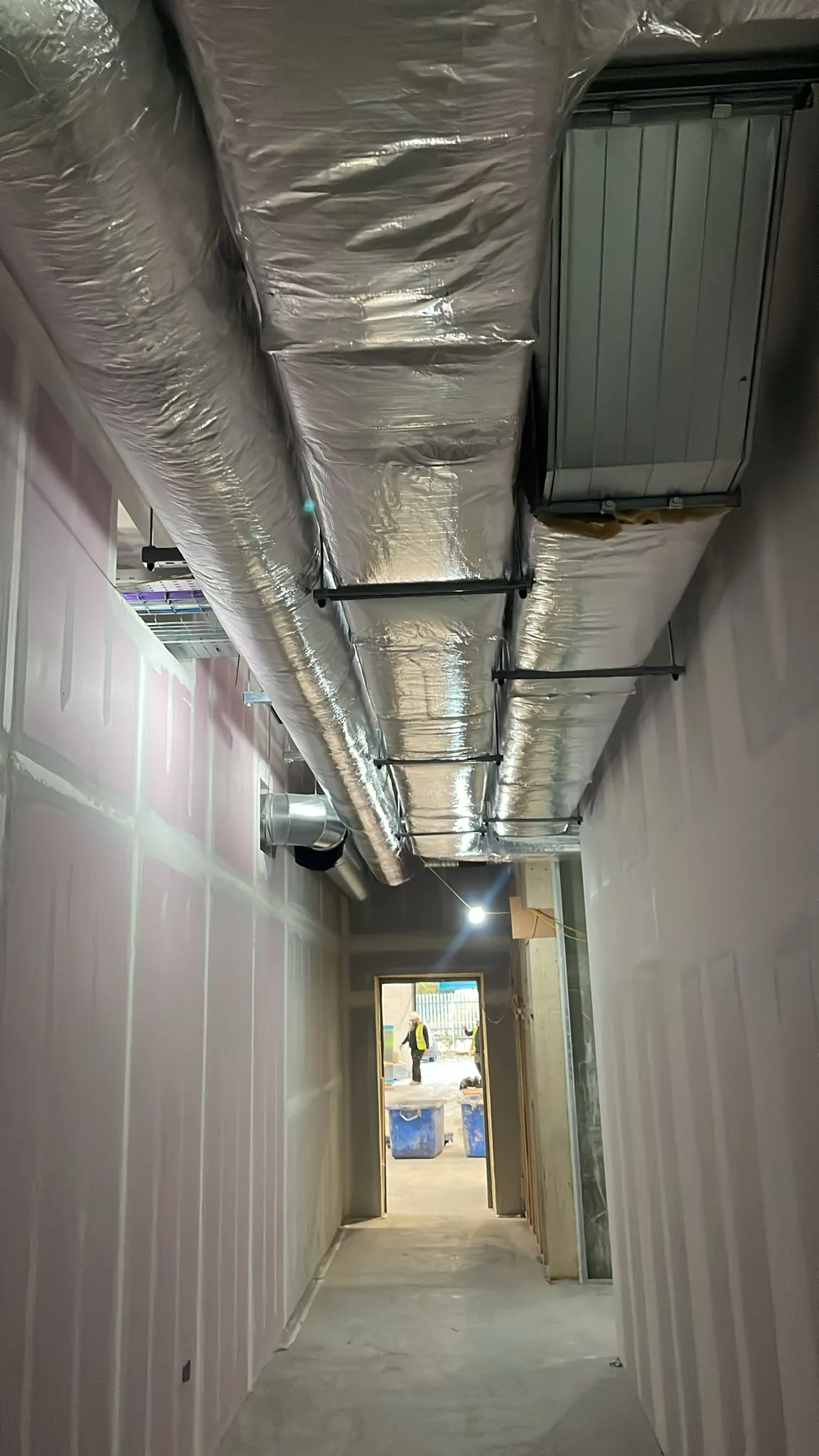 A full mechanical installation was carried out for the Uisce Éireann Operations Centre in Cookstown, Tallaght. Works included complete fit-out of heating, cooling, ventilation, water, and drainage systems within the new office, canteen, and workshop areas. The installation featured hybrid VRF systems for simultaneous heating & cooling, MVHR ventilation units with heat recovery, and air-source heat pumps serving LTHW and domestic hot water systems. Services also included mains water distribution, boosted cold-water systems, uPVC waste drainage, and full Building Management System (BMS) integration for control and monitoring.